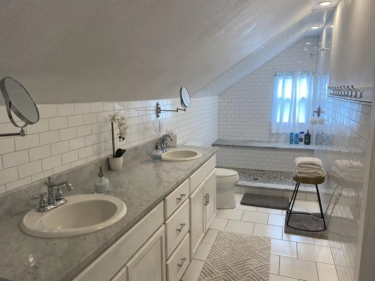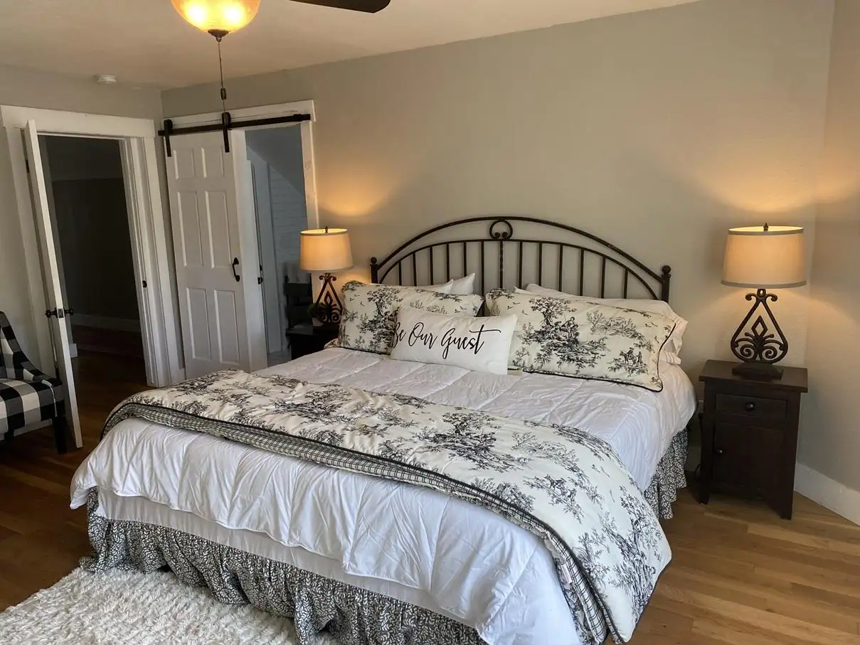 Upstairs: One luxurious king bedroom, one queen bedroom, and a large shared bath.